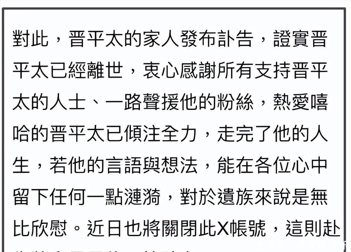 家属发了讣告。他们感谢了这些年支持他的所有人。他们说他已经用尽了全部力气。社交账号即将关闭。这大概是最后的告别。